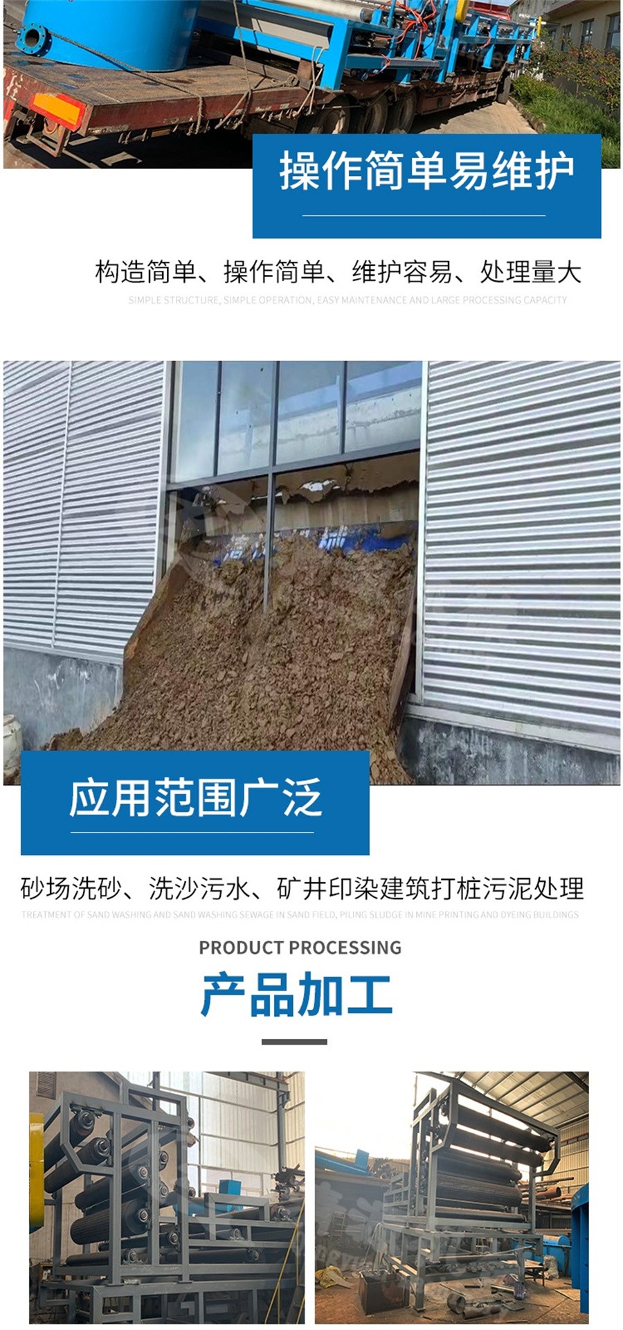 此外,我公司不僅生產帶式壓濾機,還生產板框式壓濾機、氣浮設備、固液分離設備、刮吸泥機、造紙設備等其他環(huán)保設備。